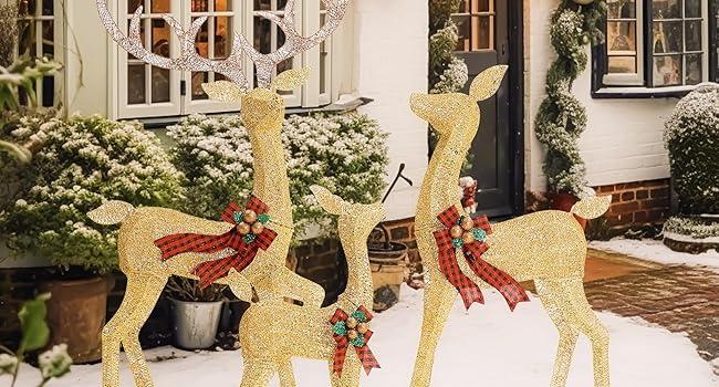 【Easy Assembly】Our Outdoor Christmas Deer set is easy to assemble with step-by-step instructions included. Simply secure the metal stakes into your yard, plug in the power adapter, and enjoy the warm charm of your glowing reindeer family.