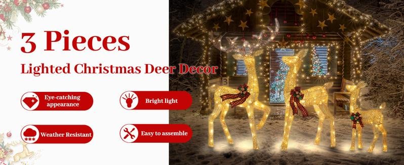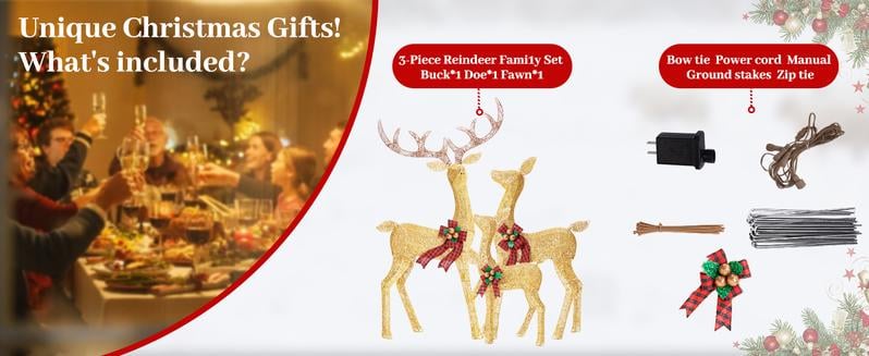 【What’s Included】 3 Outdoor Christmas Deer, 8 Ground Stakes, 3 LED String Lights, and Lifetime Warranty Service. Every piece is carefully quality-checked by our engineers to ensure durability and reliability. For any questions or assistance, our 24/7 customer support is always here for you.